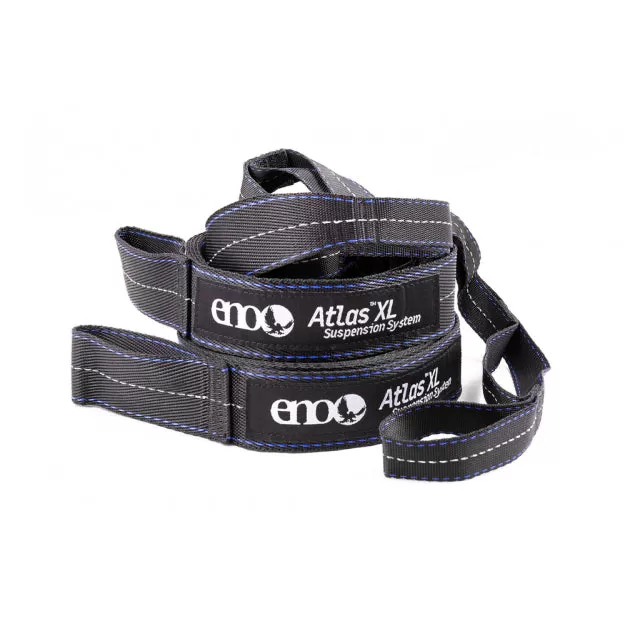 ENO pioneered the first ever knotless hammock suspension system, and over a decade later we have redesigned this best seller to help take your hang to the next level! The Atlas Straps innovative tapered construction decreases total weight, ensures increased tree protection, and integrates reflective stitching to improve nighttime visibility. This new Atlas Suspension System has the same strength and security of the original Atlas, with the same no-knots-needed set up to have you securely relaxing in seconds on any adventure!