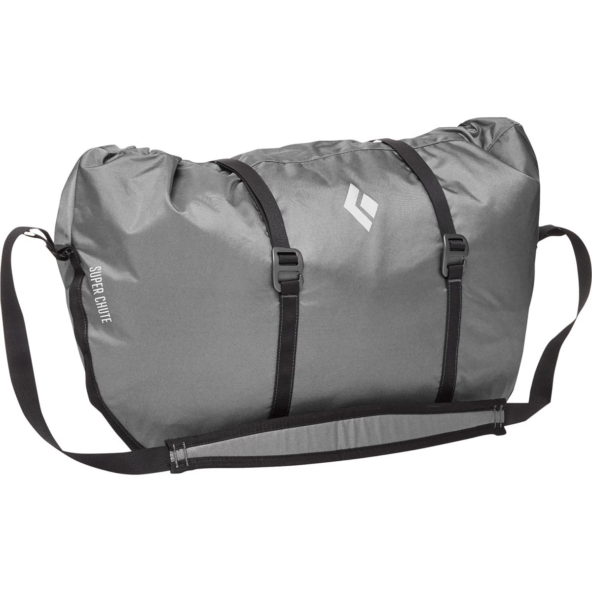 Taking a traditional rope bag design and adding an innovative funnel-shaped rope tarp for super-easy loading, the Black Diamond Super Chute combines simplicity with practicality. Barrel compression straps and a courier-style shoulder strap allow for compact, comfortable carrying to and from the crag with up to an 80-meter rope, and two internal tie-in points expedite rope management.