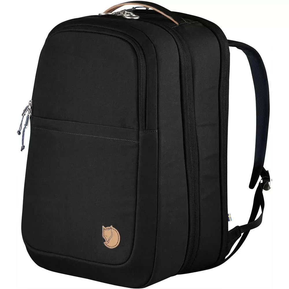 Pack it, zip it, go! Travel Pack has space for everything you need for a few nights away from home and well-planned storage minimises time spent in security checks and aeroplane aisles. It can also be comfortably carried on your back, so no need to worry about stairs, cobbled streets or uneven terrain. Hardwearing, water-resistant G-1000 HeavyDuty Eco. Laptop compartment (up to 15) with pockets for a tablet, documents etc. Volume: approx. 35 litres. Recycled polyester, organic cotton. Several inside pockets with zippers and mesh covers. Padded shoulder straps that can be stowed away. Robust zipper entirely opens up the bag. Fleece-lined pocket on top for a phone, passport etc. Front pocket with zipper, accessed from both inside and outside. Flat front pocket with zipper. Three compartments and a pocket inside, all zippered. Padded leather handle. Foam padding protects contents and makes the pack sturdy. Can be locked with a padlock (not included). Dimensions accepted by most airlines.