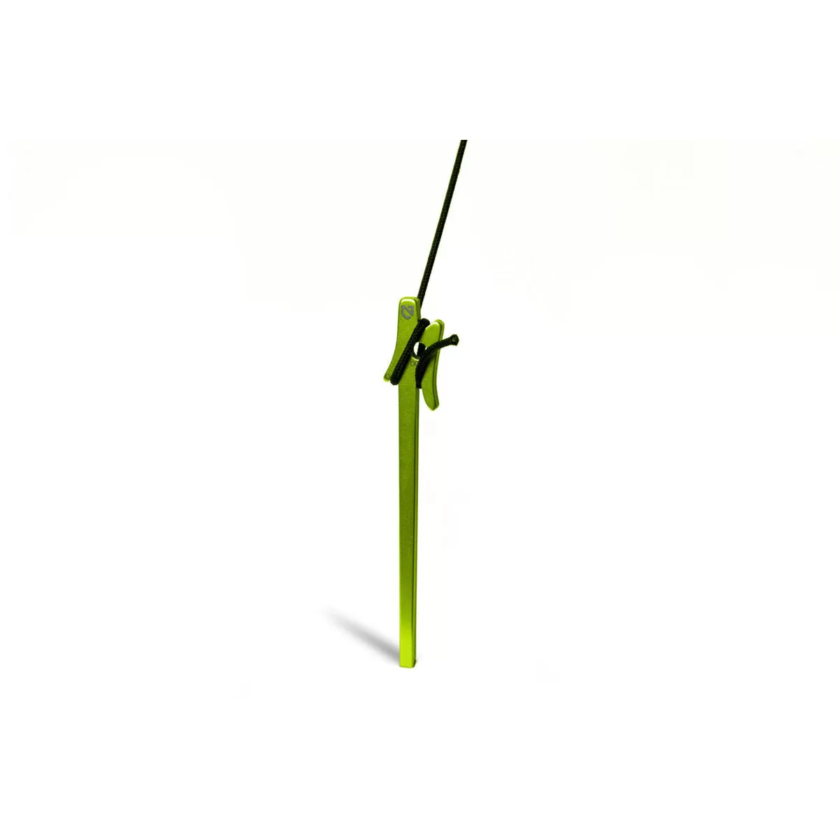 Ultralight stakes have never been so smart. Airpin’s three-point locking system holds cord tight and eliminates the need for knots, cord locks or guyout tensioners. The tapered geometry is ideal for driving into the ground and the 7075 aluminum offers superior strength for its minimal weight.