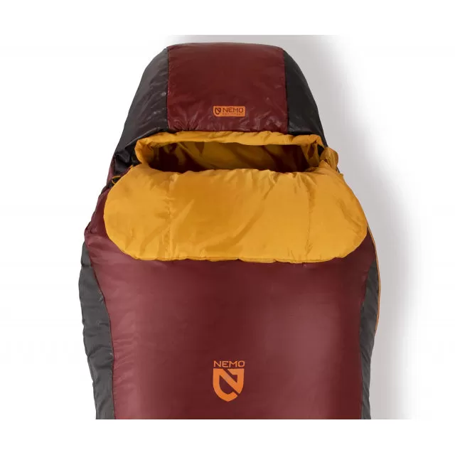 The NEMO Tempo Men’s synthetic sleeping bag blends roomy comfort with NEMO’s popular Spoon shape for a relaxed, crowd-pleasing fit that packs smaller than a rectangular sleeping bag. With a generous cut at the elbows and knees, side sleepers can shift positions comfortably throughout the night.