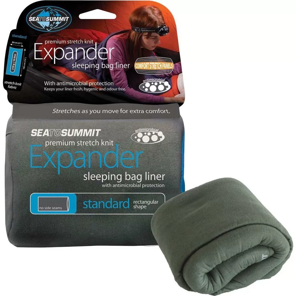 The Sea to Summit Expander Travel Liner-Standard Rectangular is made from a premium stretch knit poly-cotton, making it super stretchy and even warmer than a standard cotton weave liner.